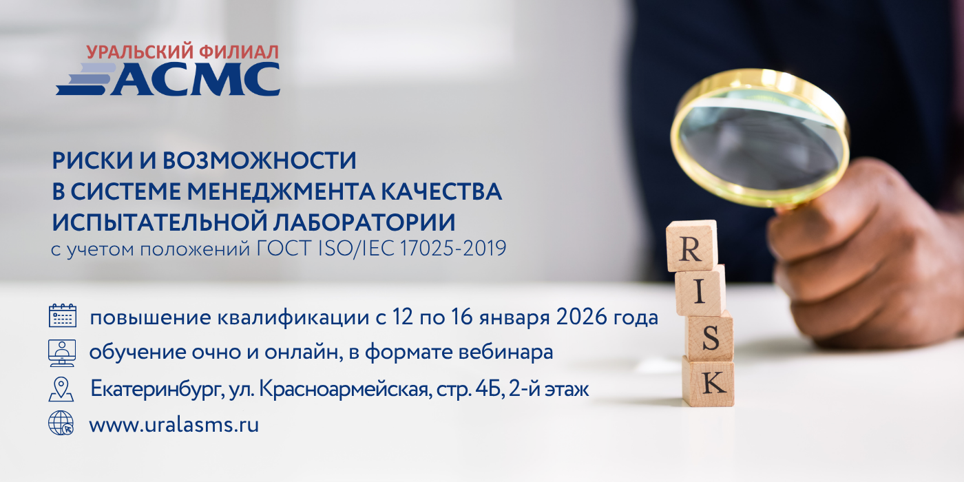 Уральский филиал АСМС проведет повышение квалификации для руководителей, специалистов испытательных лабораторий, выполняющих испытания продукции, материалов (веществ) в различных видах экономической деятельности на тему: