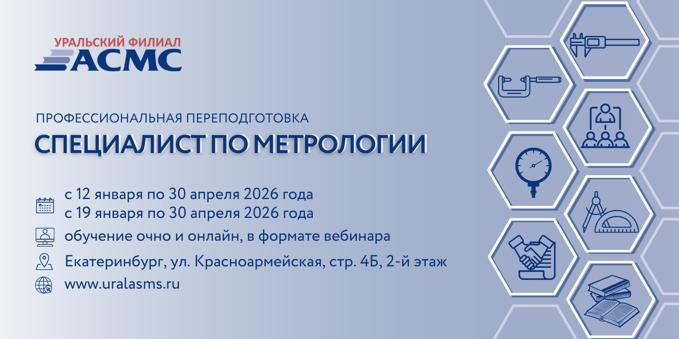 Уральский филиал АСМС проводит дополнительную профессиональную программу «Специалист по метрологии», предназначенную для переподготовки специалистов метрологических служб по направлению «Поверка и калибровка средств измерений».