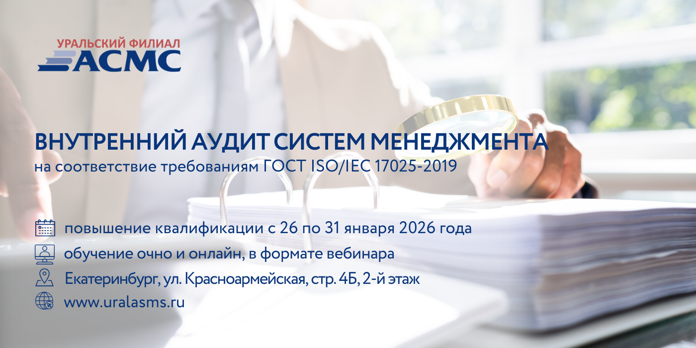 Уральский филиал АСМС проведет повышение квалификации в области организации внутренних проверок систем менеджмента руководителей и специалистов предприятий на тему: