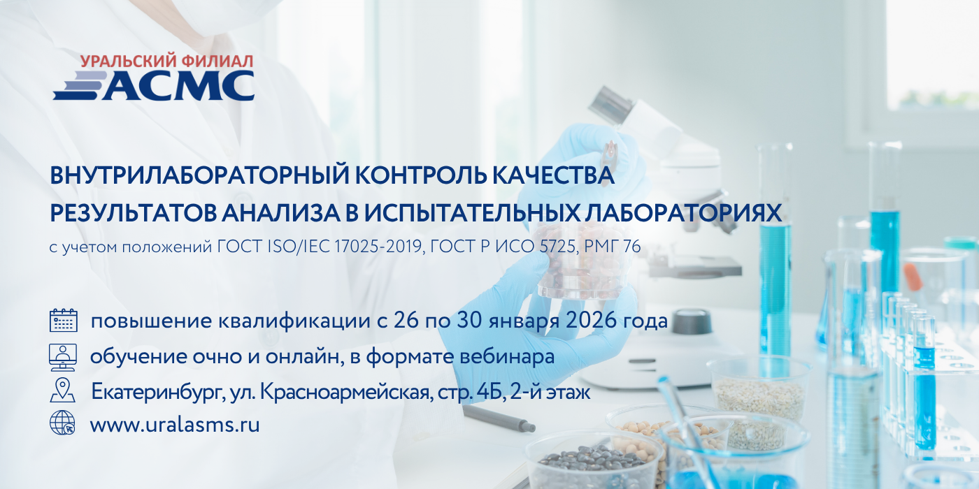 Уральский филиал АСМС проведет повышение квалификации для руководителей и сотрудников испытательных лабораторий, менеджеров по качеству на тему: